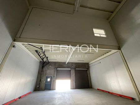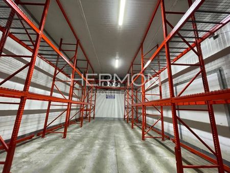 Bodega dentro de parque industrial con anden y estantes para almacenar